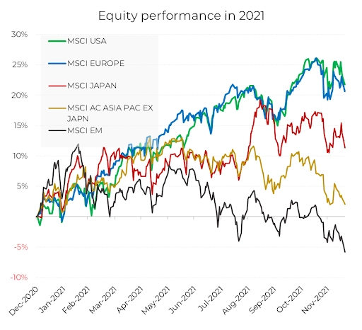 Il 2021 ha visto i mercati azionari dei paesi sviluppati fare meglio dei mercati emergenti.