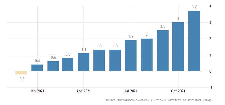 Queste immagini (prese da tradingeconomics) mostrano l’aumento dell’inflazione in USA, Europa e Italia.