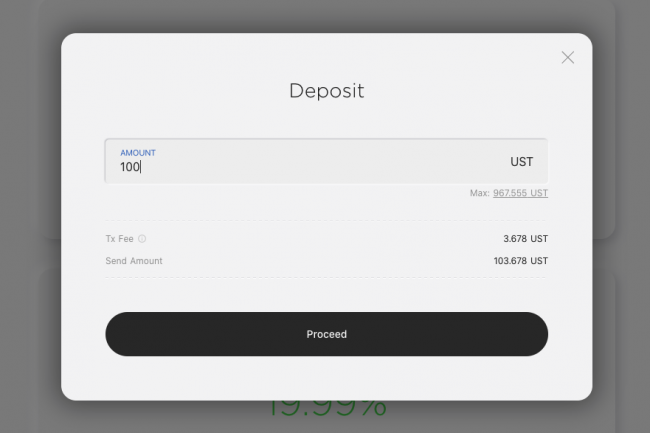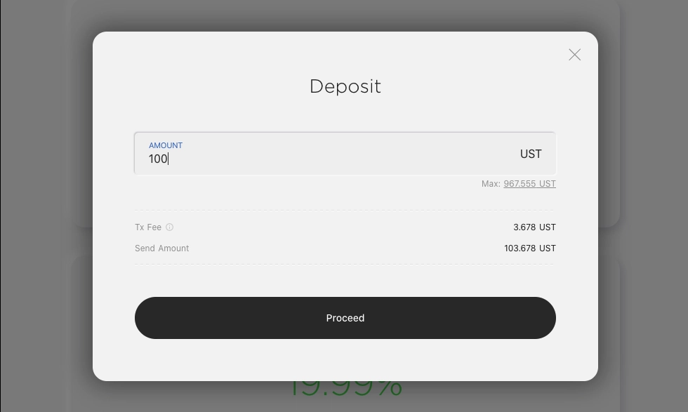 Hai completato la procedura per mettere a rendita UST al 20% di APY.