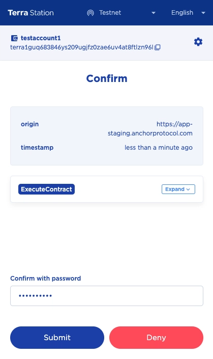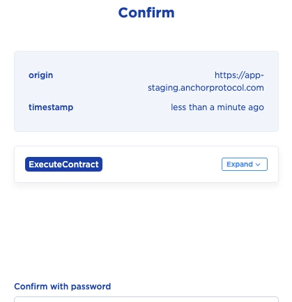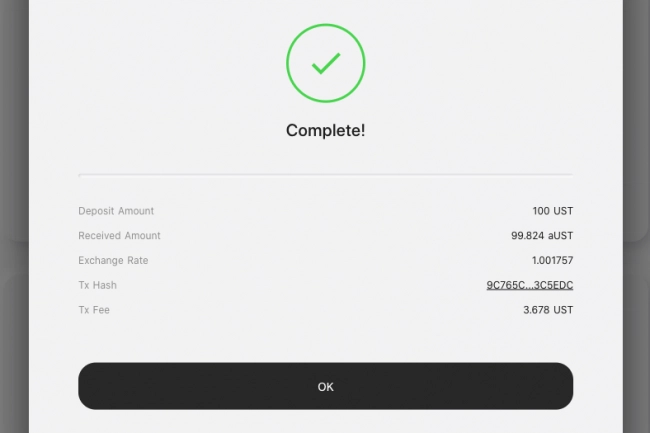 - conferma la transazione (le fee sono sempre pagate in UST);