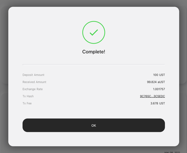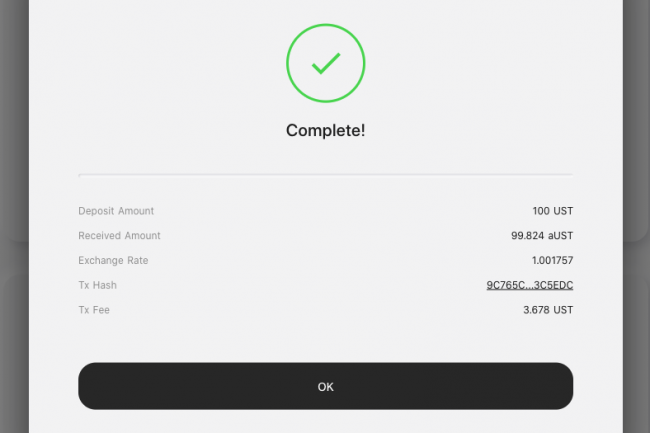 Una volta depositati gli UST riceverai in cambio aUST, i quali si apprezzeranno nel tempo grazie agli interessi pagati, attualmente sono circa al 19,4% annuale.