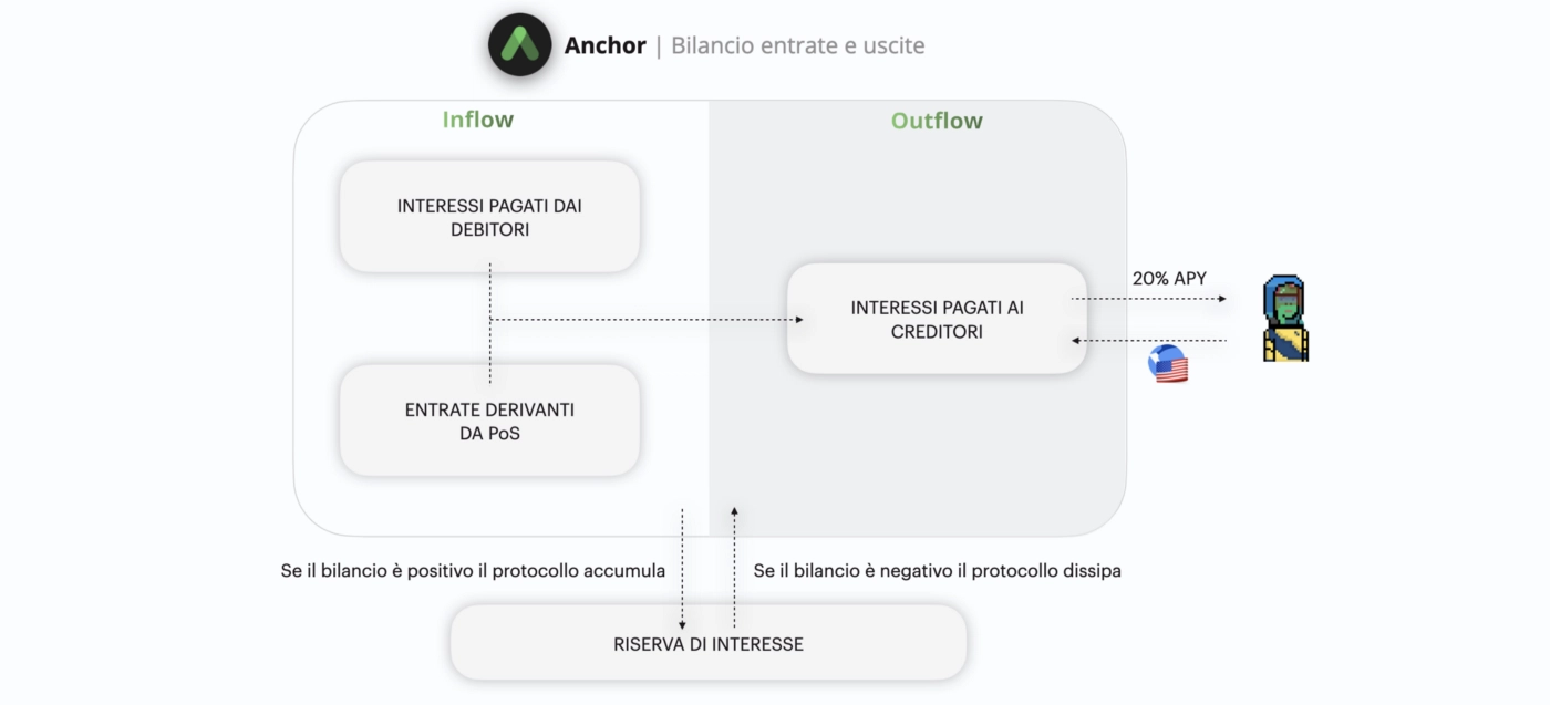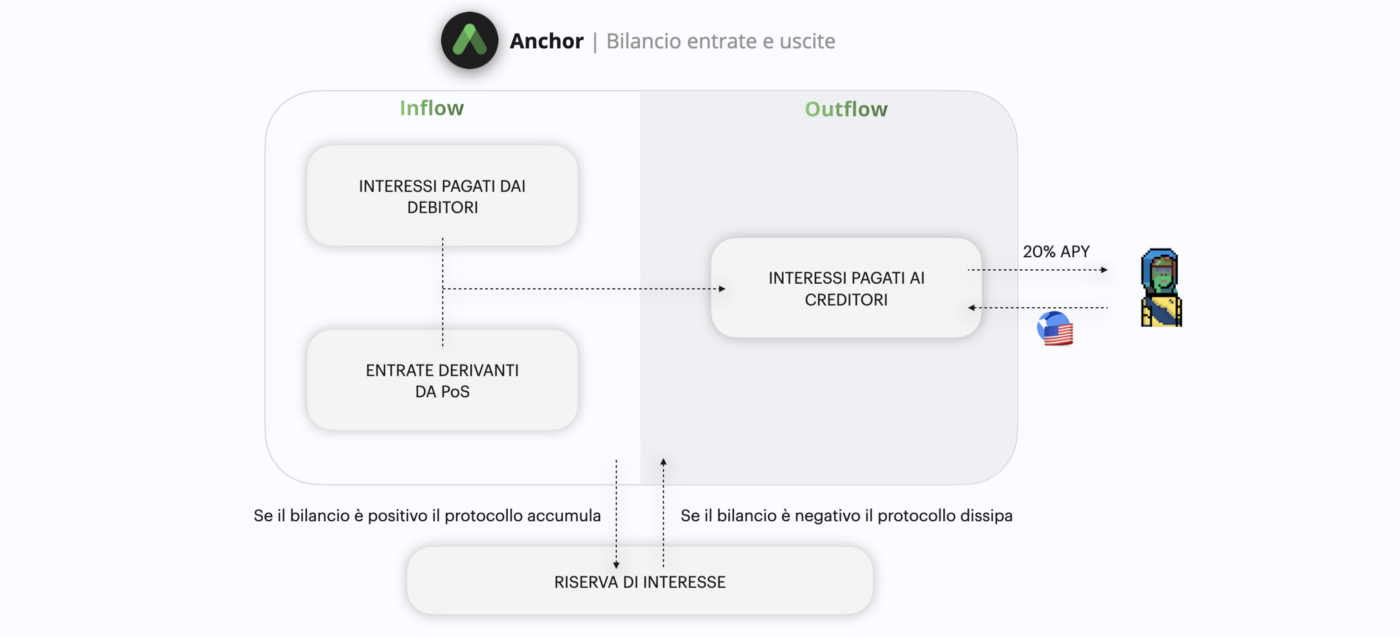 Il 20% di APY fornito dall’app di Anchor si basa, come abbiamo appena visto, sulla logica di equilibrio fra il capitale depositato e quello preso in prestito.