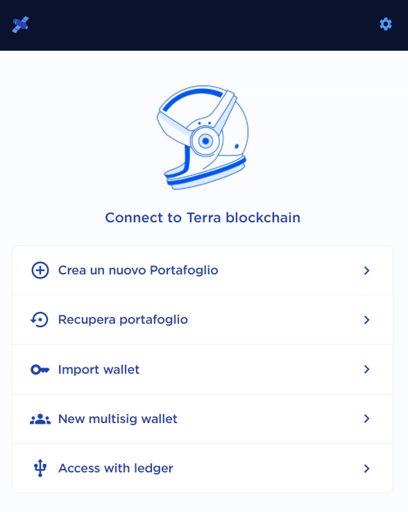 Connetti il tuo wallet Terra Station dall’icona in alto a destra.
