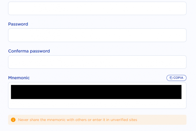 Ti verrà richiesto di salvare la tua chiave privata formata da 24 parole che NON devono mai essere rivelate a nessuno.