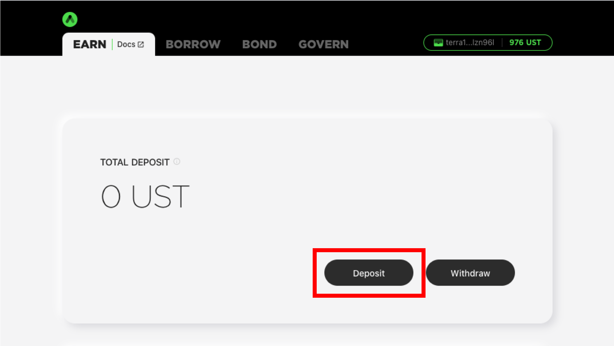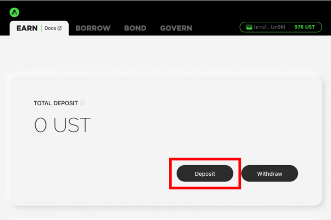 Deposita UST su Anchor Protocol