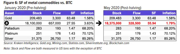 L’oro ha uno stock to flow di 63.48, bitcoin arriverà a 55.94, con un inflazione del 1.79%.