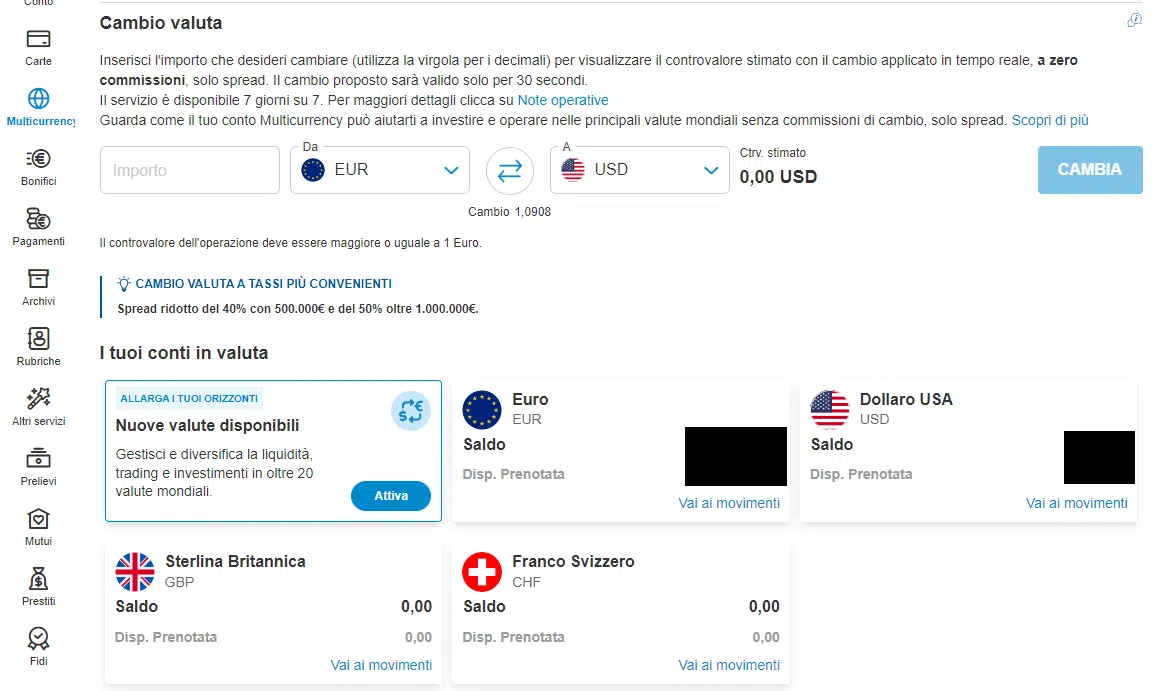 Per i cambi di importo rilevante è previsto uno sconto sullo spread standard: