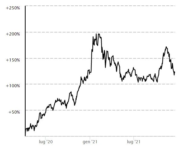 - efficacia nell’effettuare un PAC, essendo un investimento solamente bullish, con un piano di accumulo è possibile anche sbagliare il timing di ingresso iniziale e mediare il prezzo di carico;