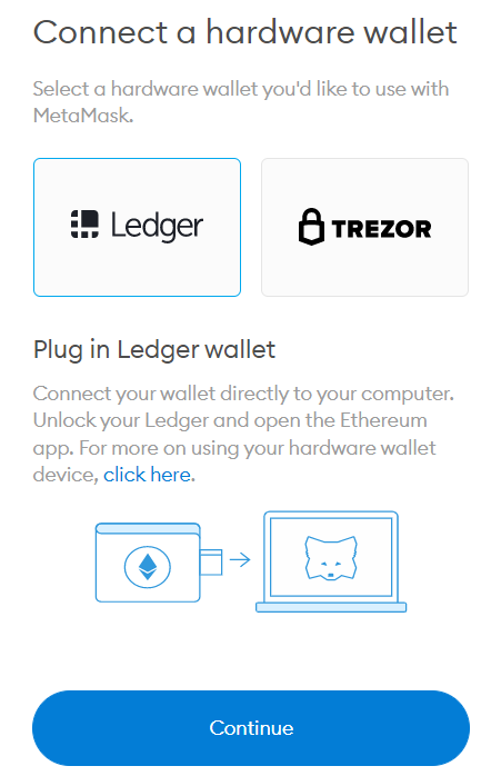 • nella pagina che ti si apre seleziona Ledger e premi su “continue”;