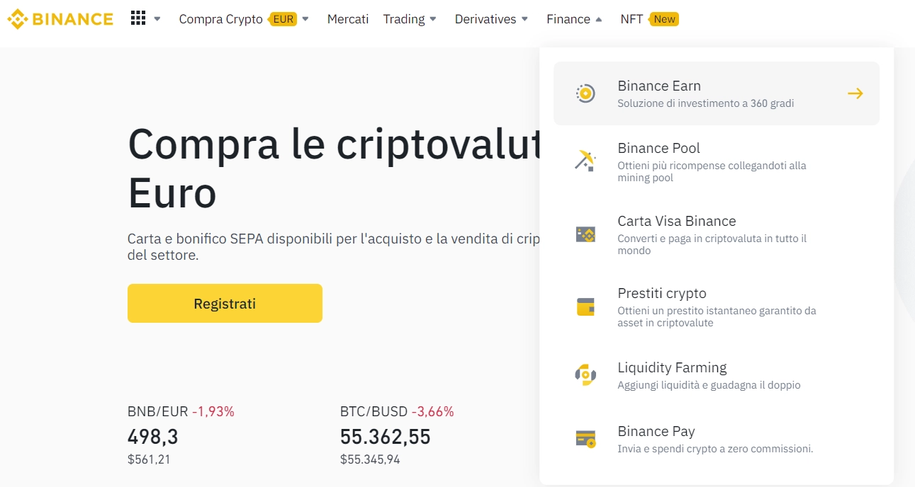 - vai su menù “wallet” e dall’elenco premi su “earn”;