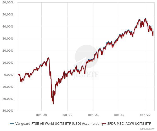 I due ETF All World hanno lo stesso andamento percentuale: