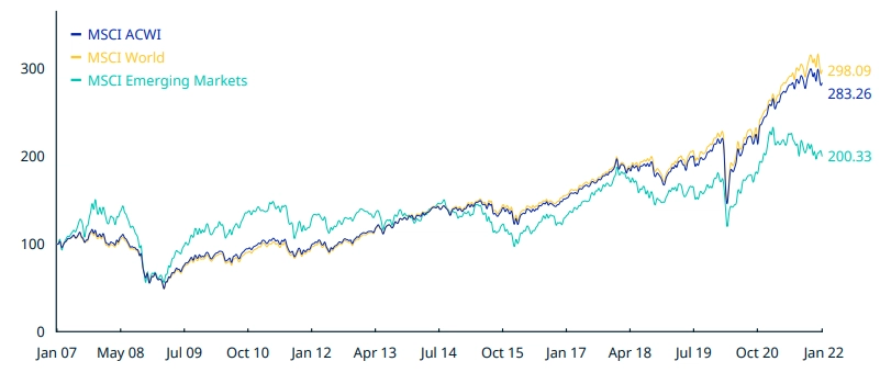 La correlazione tra MSCI World e MSCI Emerging Markets