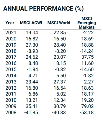 I rendimenti annuali degli ultimi 14 anni dal 2008 al 2021 sono stati questi: