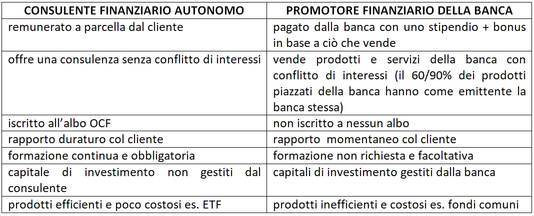 Differenze tra consulente finanziario autonomo e promotore finanziario della banca