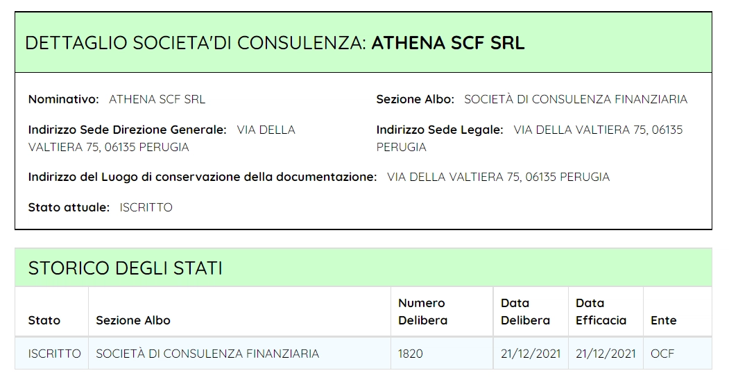 In tutta Italia, esiste solo una società di consulenza finanziaria in Umbria Athena SCF e solo 4 consulenti finanziari autonomi tra cui Filippo Angeloni.