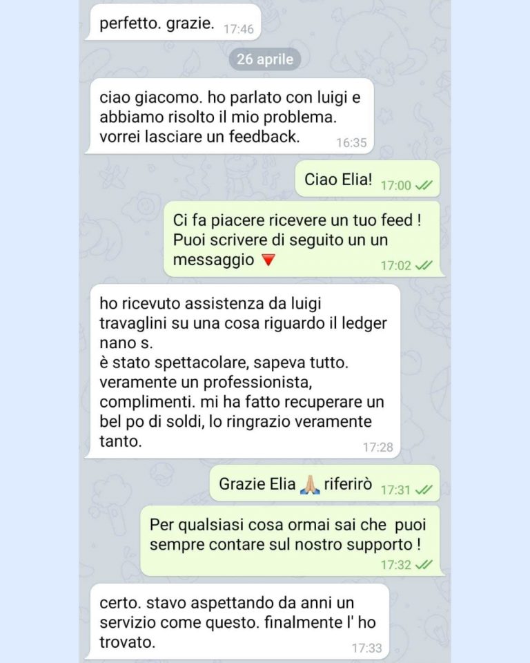 Ci siamo trovati spesso a dover aiutare clienti che hanno subìto la perdita temporanea o definitiva dei propri fondi. Fortunatamente, avvalendosi dell’aiuto di un esperto, è spesso possibile recuperare le proprie criptovalute perse.