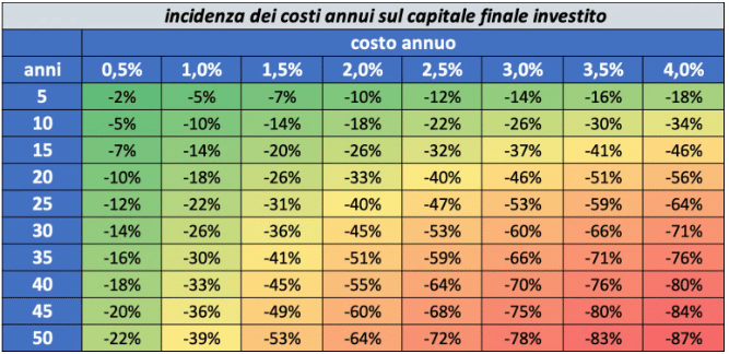 Questa tabella mostra l’incidenza dei costi annui sul capitale finale investito.