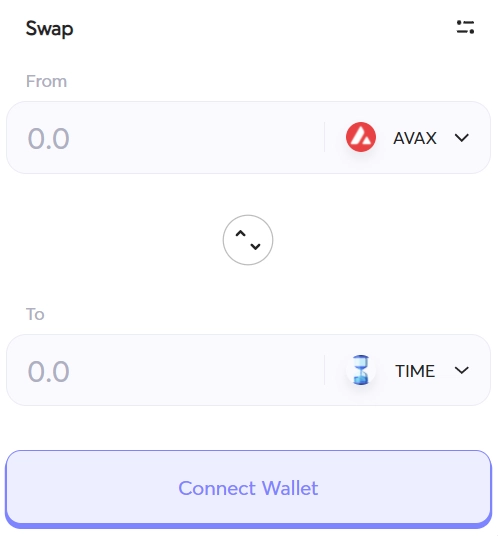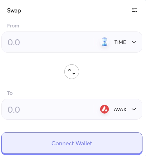 - scambiare i tuoi AVAX per TIME (non usare tutti gli AVAX perché ti serviranno per pagare le fees successive).
