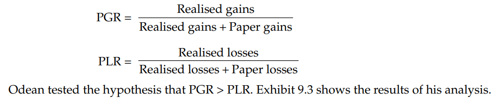Ha poi determinato la Proporzione di Guadagni Realizzati (PGR) e la Proporzione di Perdite Realizzate (PLR) come metriche chiave, scoprendo che il PGR era generalmente più alto del PLR, indicando una preferenza per la vendita di azioni vincenti rispetto a quelle perdenti.