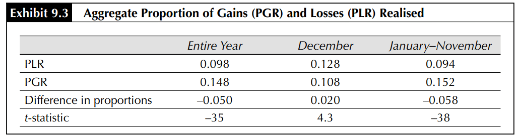 Solo nel mese di dicembre (se preso singolarmente), gli investitori vendono di più i perdenti rispetto ai vincitori, per ragioni fiscali.