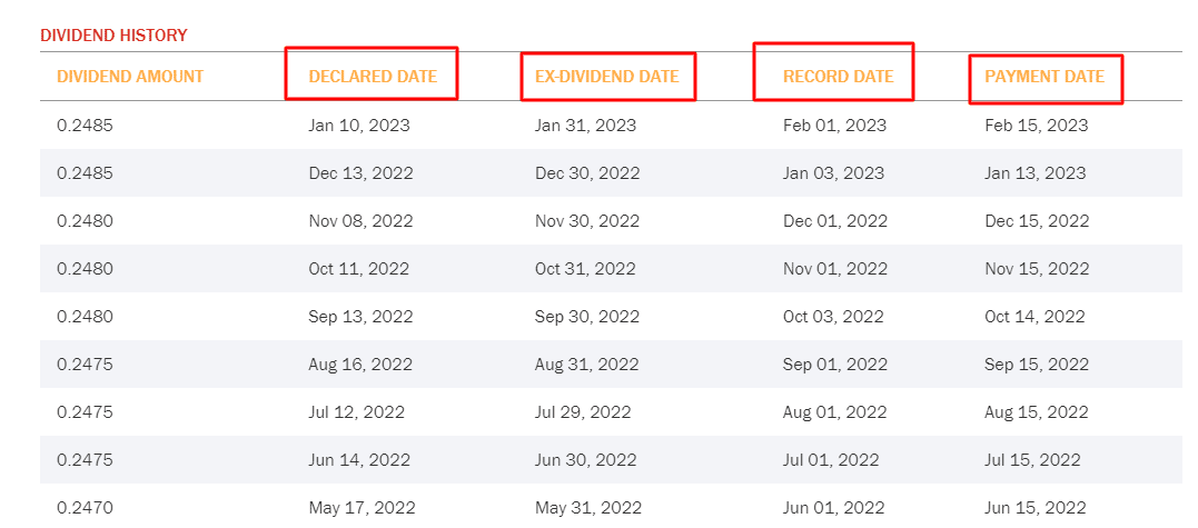 - declared date (o declaration date); indica il giorno in cui l’organismo di gestione della società (normalmente il cda) delibera di distribuire un dividendo e ne stabilisce l’ammontare.