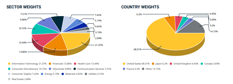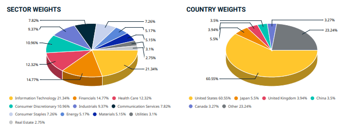 L’indice investe nelle società a grande e media capitalizzazione dei 23 paesi sviluppati e dei 24 paesi emergenti del mondo.