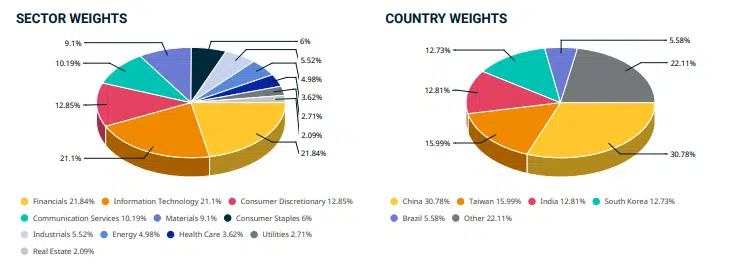 L’indice replica l’andamento delle società a grande e media capitalizzazione dei 24 paesi emergenti del mondo.