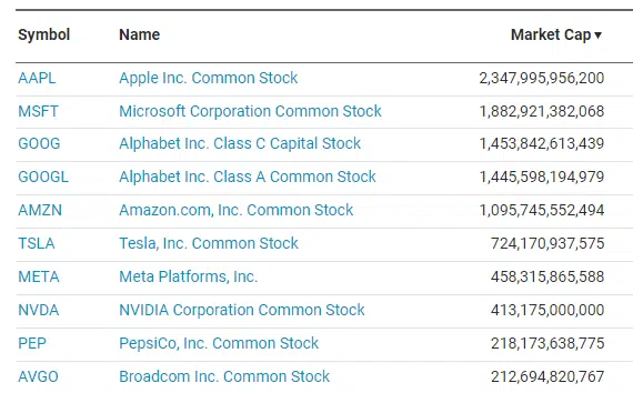 Il Nasdaq 100 include le 100 maggiori società non finanziarie quotate sul Nasdaq.
