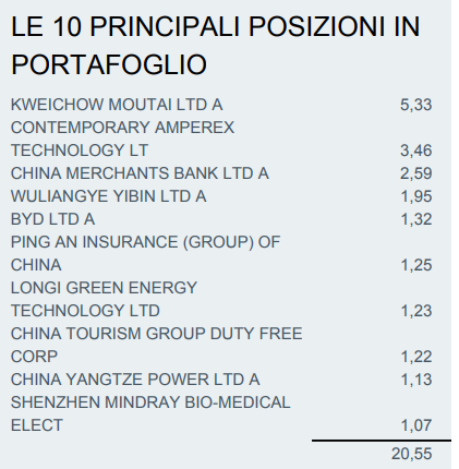 Le prime 10 posizioni in portafoglio detengono il 42,94% con Tencent e Alibaba che hanno una quota superiore al 10%.