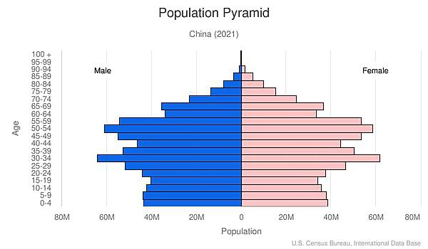Una conseguenza della politica di controllo della popolazione cinese nota come “politica del figlio unico”, rallentata prima nel 2016 con 2 figli e poi nel 2021 con 3 figli, ha portato la Cina ad essere uno dei paesi che invecchiano più rapidamente al mondo.