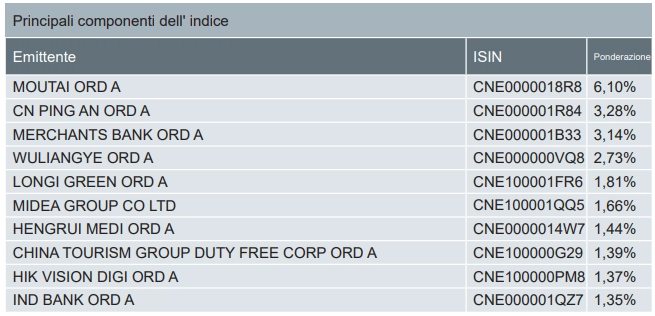 - MSCI China A, replica i titoli più capitalizzati contraddistinti dalla lettera A.