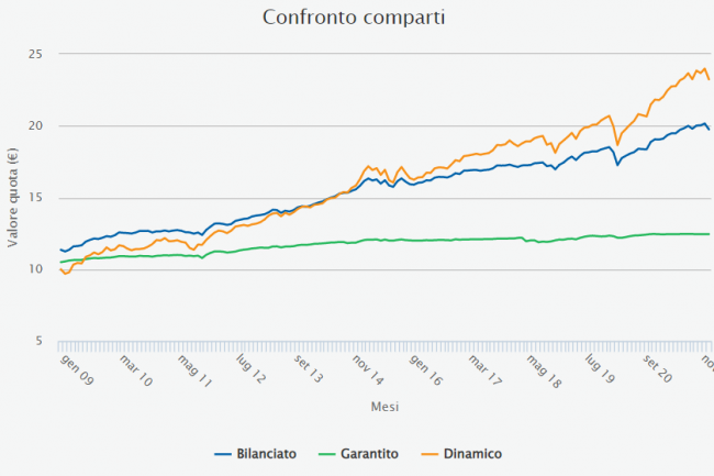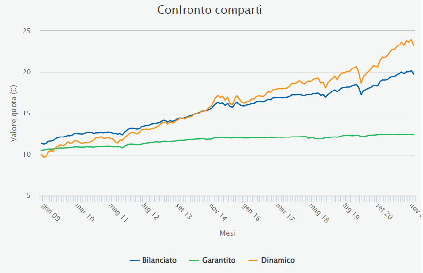 Questo consente di modificare la propria propensione al rischio passando con il trascorrere degli anni dal comparto dinamico a quello bilanciato e magari concludere gli ultimi anni prima del pensionamento con quello garantito.