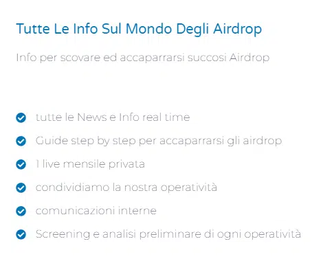 Altrimenti è necessario utilizzare un servizio a pagamento che permetta di ricevere informazioni di qualità sulle procedure esatte da seguire, su quali airdrop puntare e su quali no, per evitare al massimo perdite di tempo e soldi.