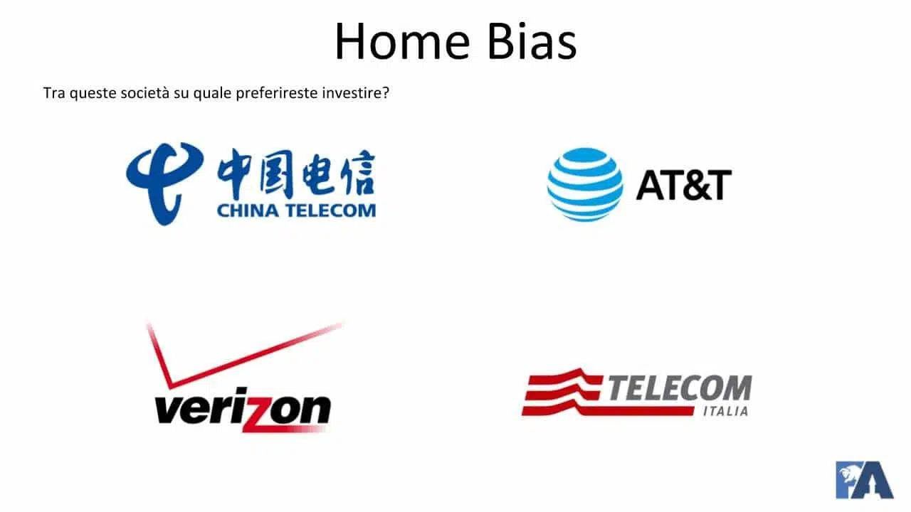 Tendiamo sempre a ricadere nell’home bias, e questo ci porta ad essere miopi. Nel mondo potrebbero esserci società molto migliori rispetto alle nostre domestiche, e potrebbero esserci quindi migliori investimenti rispetto a quelli domestici.