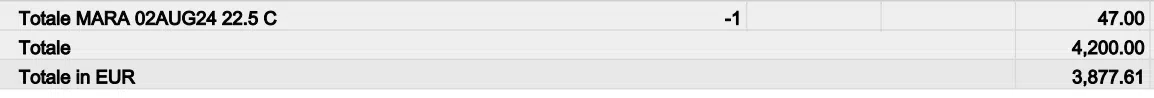- Luglio: 4200$ (record di cashflow mensile in opzioni del 2024 per ora. Ho operato dal mare, in Sardegna, mi sono quasi ripagato interamente la vacanza.)
