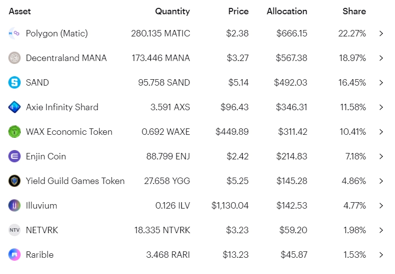 Il Metaverse Index è un ottimo token per diversificare sul metaverso (NFT, realtà virtuale, land,…)