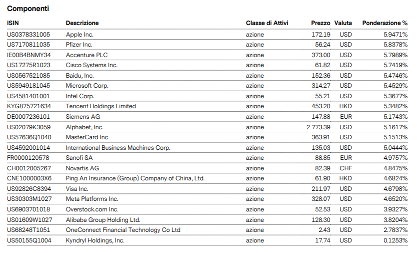 Avendo uno storico molto breve è difficile fare un confronto a livello di rendimento e con esso è complicato valutare anche un rapporto rischio/rendimento valido visto il settore tecnologico in estrema crescita.