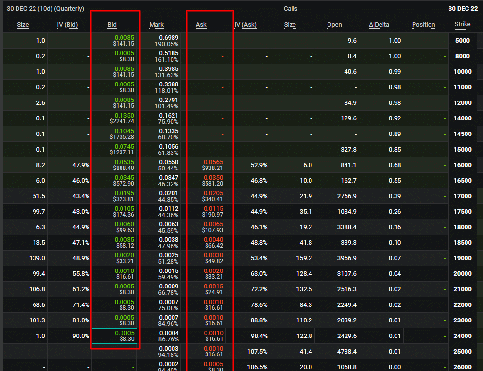 Per farti un’idea il premio delle opzioni è ciò che troviamo nell’order book e quindi in ASK e BID.