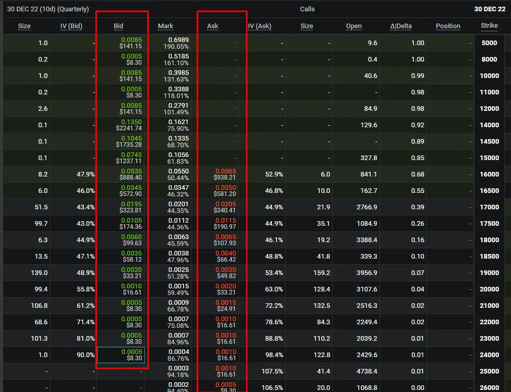 Per farti un’idea il premio delle opzioni è ciò che troviamo nell’order book e quindi in ASK e BID.