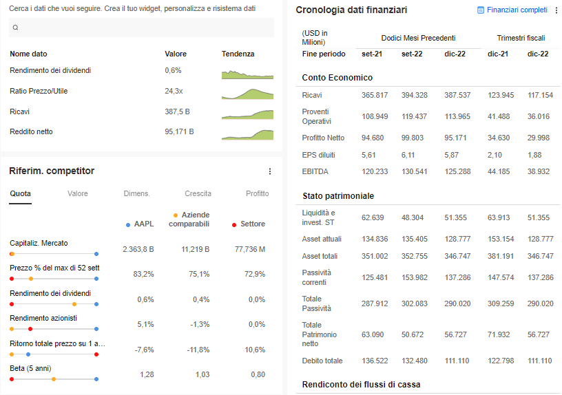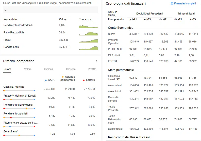 - accesso a +1200 dati sui fondamentali