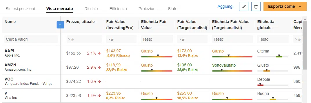Hai capito bene, troverai il fair value di ogni singola azione quindi potrai a colpo d’occhio, grazie anche ad etichette molto intuitive, se un titolo è sottovalutato o sopravvalutato.