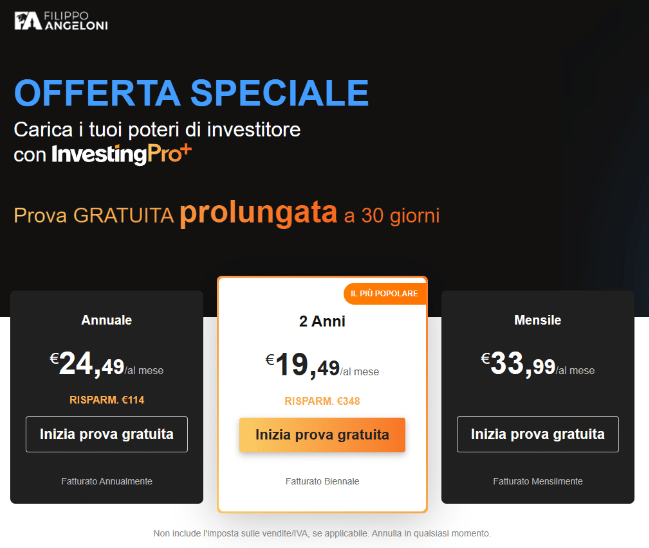 Grazie alla collaborazione tra Filippo Angeloni e Investing Pro ho riservato per te un’offerta esclusiva.