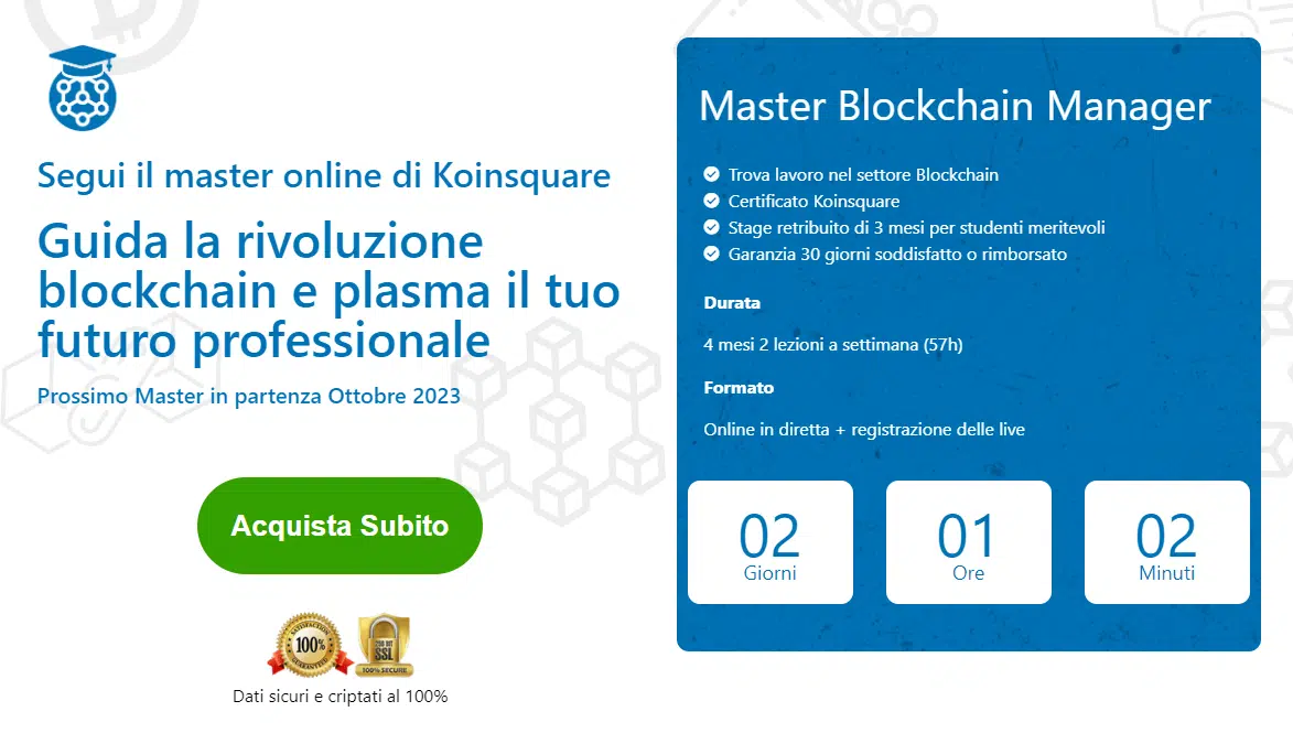 Proprio per questo Koinsquare ha ideato il Master Blockchain Manager, master che permette ai propri studenti di diventare consulenti/manager Blockchain.