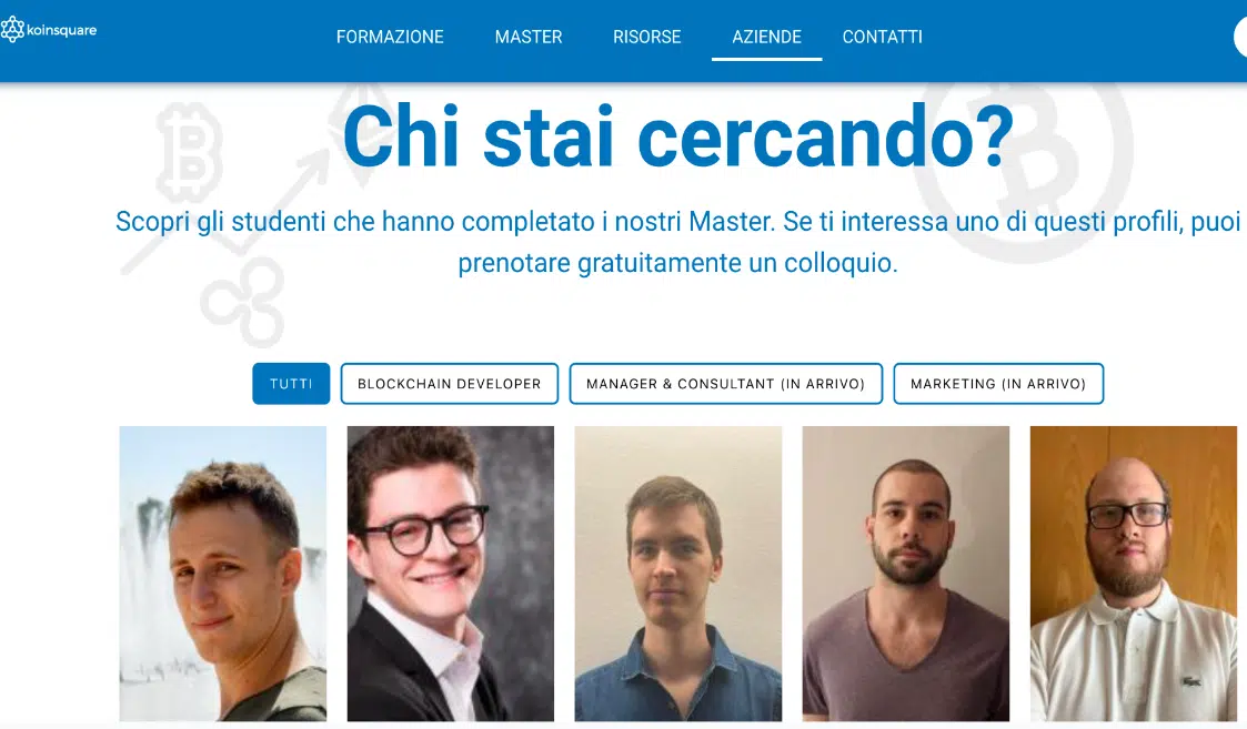 Oltre a questo per tutti gli studenti del Master sarà possibile attingere dal network Koinsquare. Trovare lavoro quindi sarà ancora più semplice.