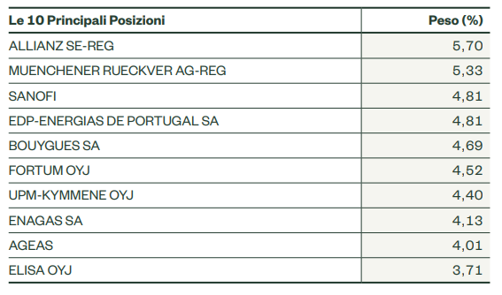 Le prime 10 posizioni in portafoglio detengono circa il 20%.