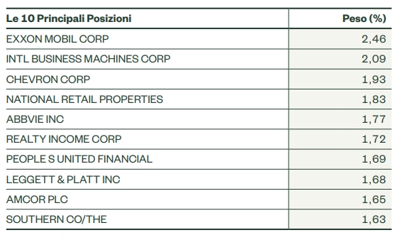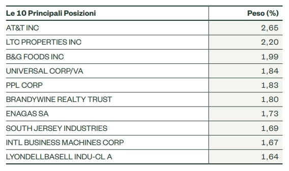 Le prime 10 posizioni in portafoglio detengono circa il 46%.