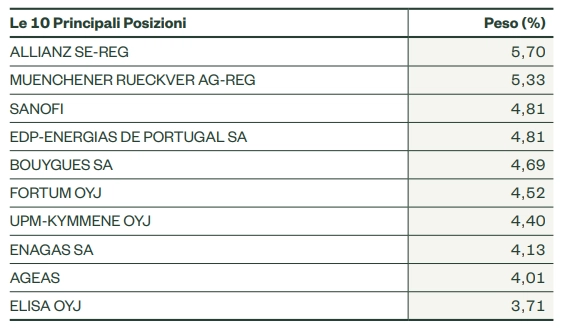 Le prime 10 posizioni in portafoglio detengono circa il 20%.