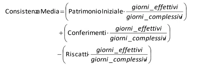 La somma di tutti i flussi moltiplicati per i relativi giorni dà luogo alla consistenza media (CM). È importante notare che i flussi in entrata (gli investimenti) sono considerati positivi e quelli in uscita (i riscatti) sono considerati negativi nella somma algebrica.