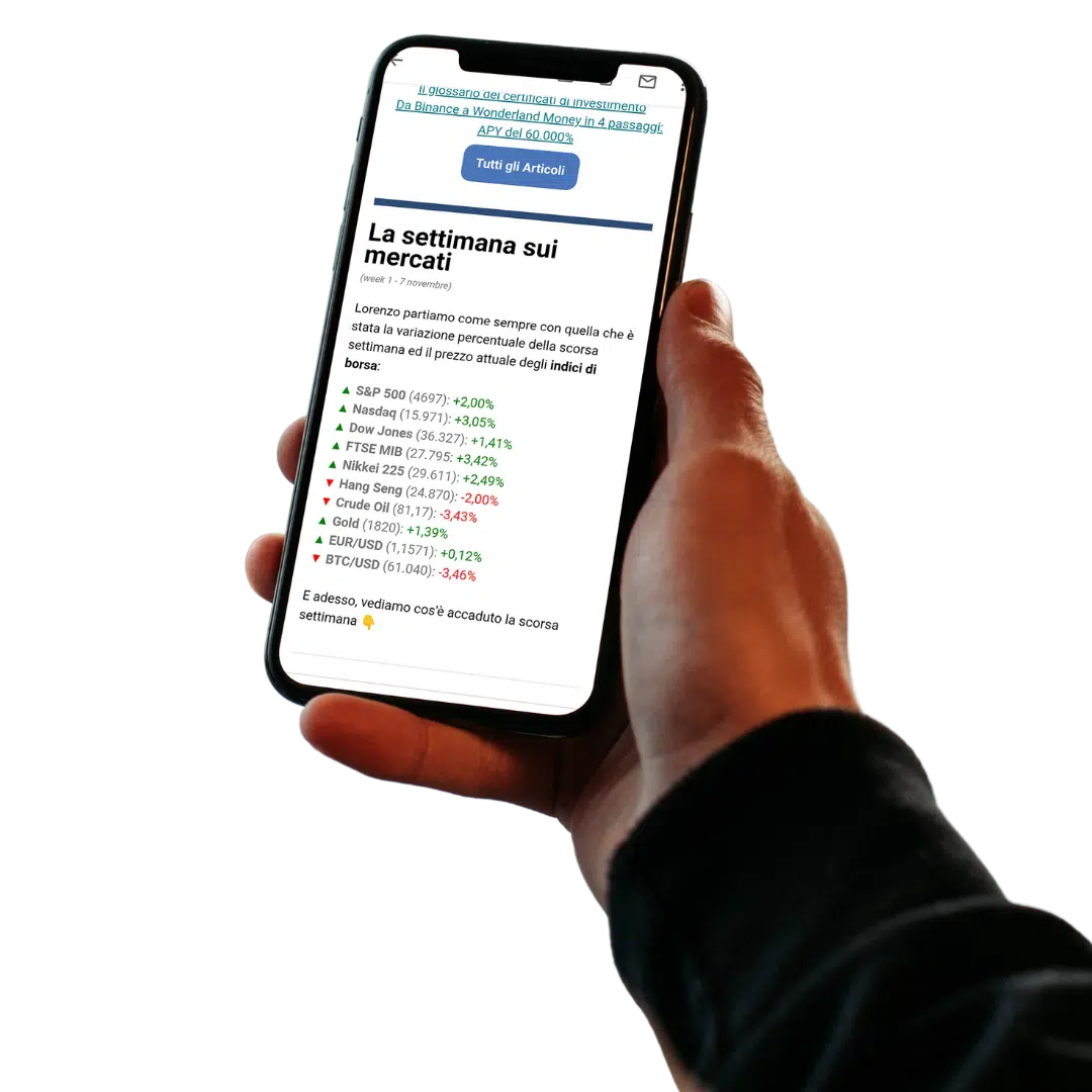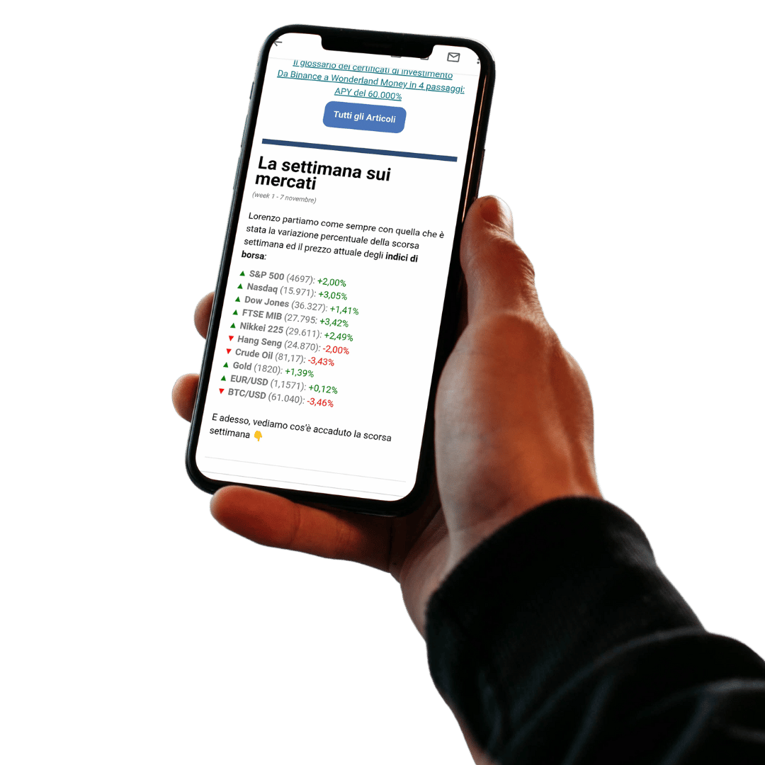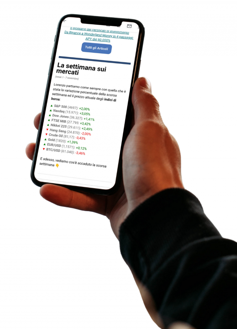 Ricevi una mail a settimana con tutte le news dei mercati finanziari, oltre ai miei consigli e alle strategie che mi hanno permesso di vivere libero secondo i miei termini.