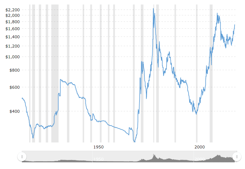 Da sempre si ritiene che l’oro permetta di proteggersi in ogni caso dall’inflazione. Ad ogni modo i grafici precedenti mettono in discussione questa credenza.